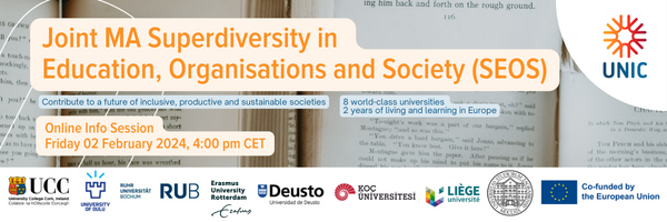Pridružite nam se u petak, 2. veljače 2024. u 16:00 CET na webinaru koji predstavlja naš novi UNIC-ov Joint Masters in Superdiversity in Education, Organisations and Society (SEOS).