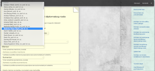 Poveznica: Zahtjev za odobrenje teme završnog / diplomskog rada (Prijavljujete se svojim AAI@EduHr računom bez @ufzg.hr nastavka u korisničkom imenu)