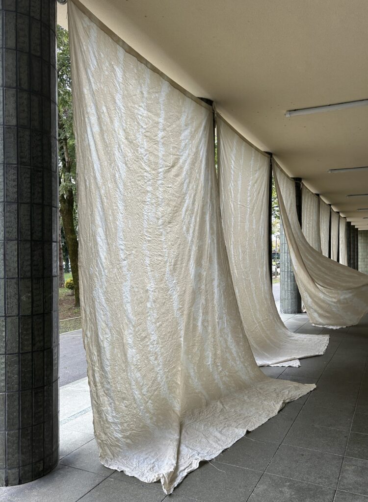 Rad Provjetravanje je umjetnička instalacija postavljena na pročelju zgrade Učiteljskog fakulteta Sveučilišta u Zagrebu, koja je u jesen 2024. godine potpuno obnovljena nakon potresa. Ova zgrada, koja je kroz proces napuštanja, selidbe i renovacije prošla kroz brojne energetske promjene, sada ponovo ističe svoj identitet kao institucija koja pruža zaštitu i okupljanje svim studentima, profesorima i učenicima koji borave u njoj. Instalacija ima za cilj simbolično provjetravanje prostora, čineći ga prohodnijim i nježnijim tijekom trajanja Zagrebačkog salona, te poziva posjetitelje na interakciju sa zgradom. Instalacija se sastoji od gigantskih tekstilnih zavjesa, koje pozivaju prolaznike da se provuku kroz njih i istraže mogućnosti koje tekstil nudi kao materijal. Mekani, taktilni materijali zavjesa, koji se pod rukom povijaju i propadaju, stvaraju osjećaj nedovršenosti, krhkosti i nedostatnosti. Za razliku od tradicionalnih skulptura od kamena, drveta ili bronce, koje odišu postojanošću i stabilnošću, tekstil ističe osjećaj ranjivosti i bespomoćnosti. Materijali instalacije sugeriraju tragove ljudskog dodira i potiču gledatelje na interakciju, dok promoviraju tekstil kao materijal koji njeguje i iscjeljuje. Bliskost čovjeka i tkanine postavlja tekstil visoko na hijerarhijskoj ljestvici kiparskih materijala, obogaćujući umjetnički izraz svojim jedinstvenim karakterom i mogućnostima oblikovanja. “Provjetravanje” stoga nije samo prostorna intervencija, već i ritualni čin koji poziva na zajedničko stvaranje i obnovu kroz dodir i igru, naglašavajući transformacijsku snagu tekstila u suvremenom umjetničkom kontekstu.
