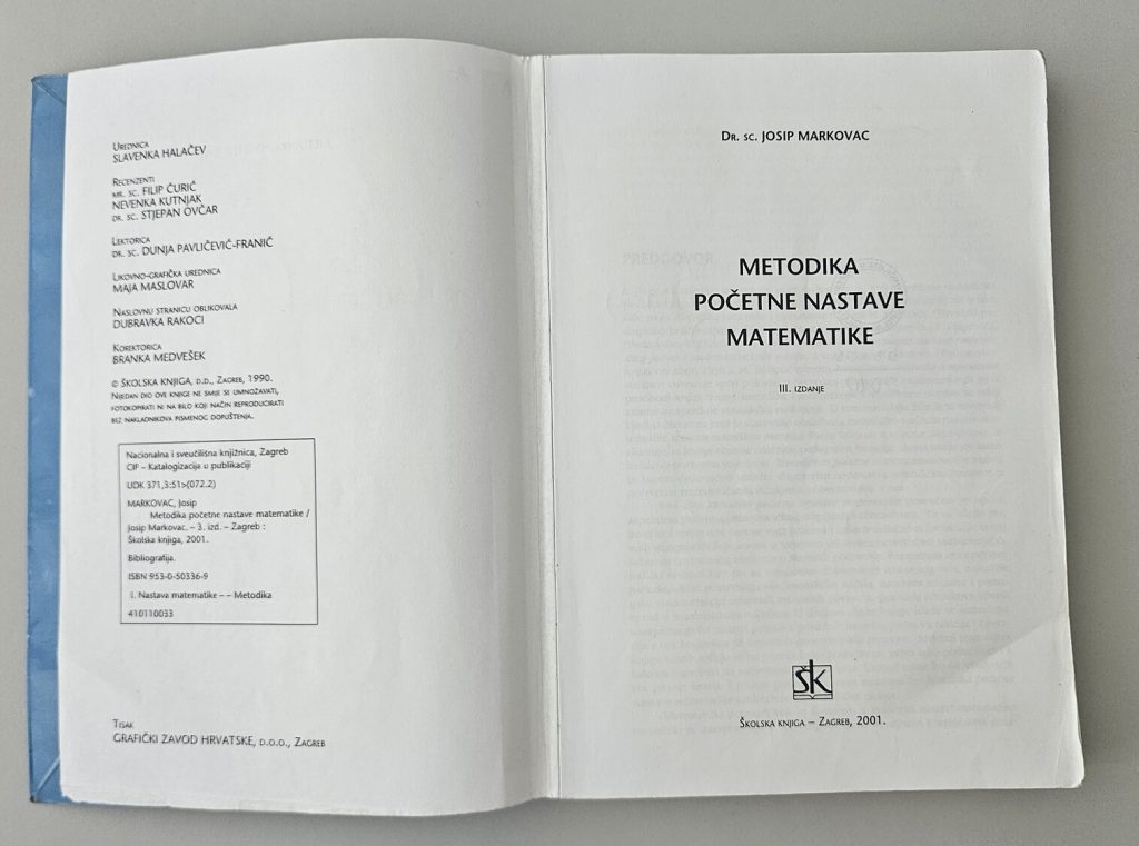 Markovac, Josip : Metodika početne nastave matematike, III. Izdanje, Zagreb, Školska knjiga, 2001.