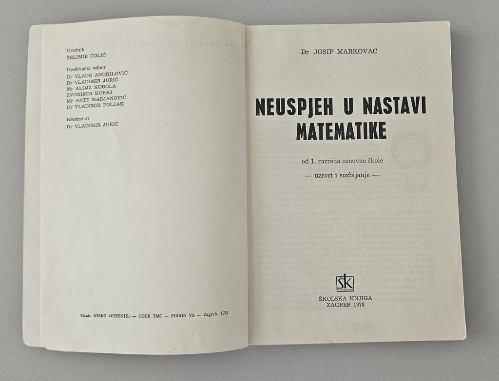Markovac, Josip : Neuspjeh u nastavi matematike od 1. razreda osnovne škole, uzroci i suzbijanje, Zagreb, Školska knjiga, 1978.