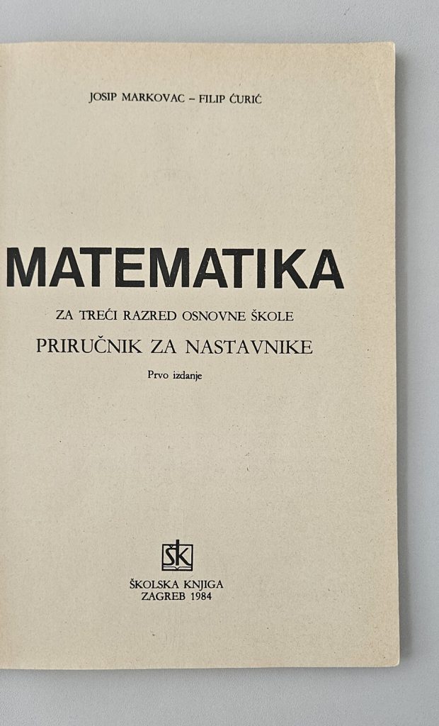 Markovac, Josip; Ćurić, Filip : Matematika za treći razred osnovne škole, Priručnik za nastavnike, Prvo izdanje, Zagreb, Školska knjiga, 1984.