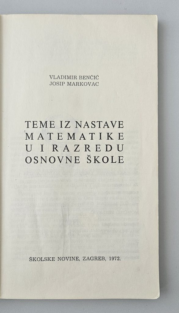 Benčić, Vladimir; Markovac, Josip : Teme iz nastave matematike u I razredu osnovne škole, Zagreb, Školske novine, 1972.