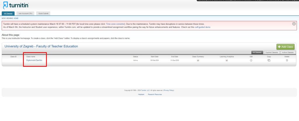 - U slijedećem koraku potrebno je prijaviti se na “Diplomski/Završni” (Class name) (Slika 3.):