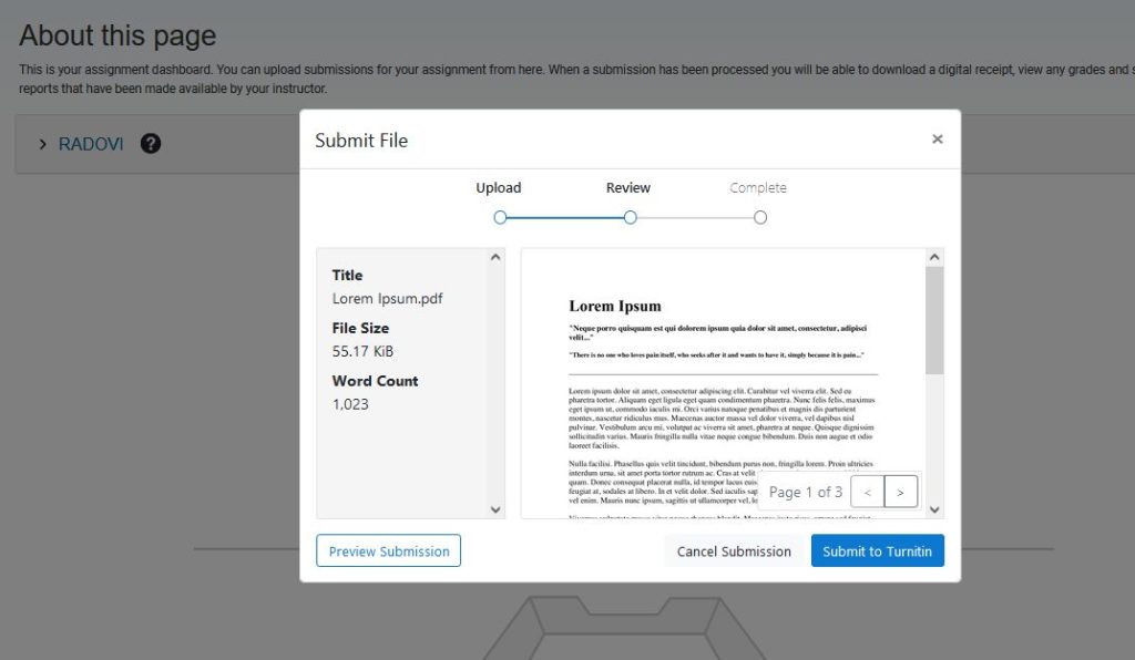 - Nakon predaje rada (Submit to Turnitin), sustav će automatski započeti provjeru autentičnosti